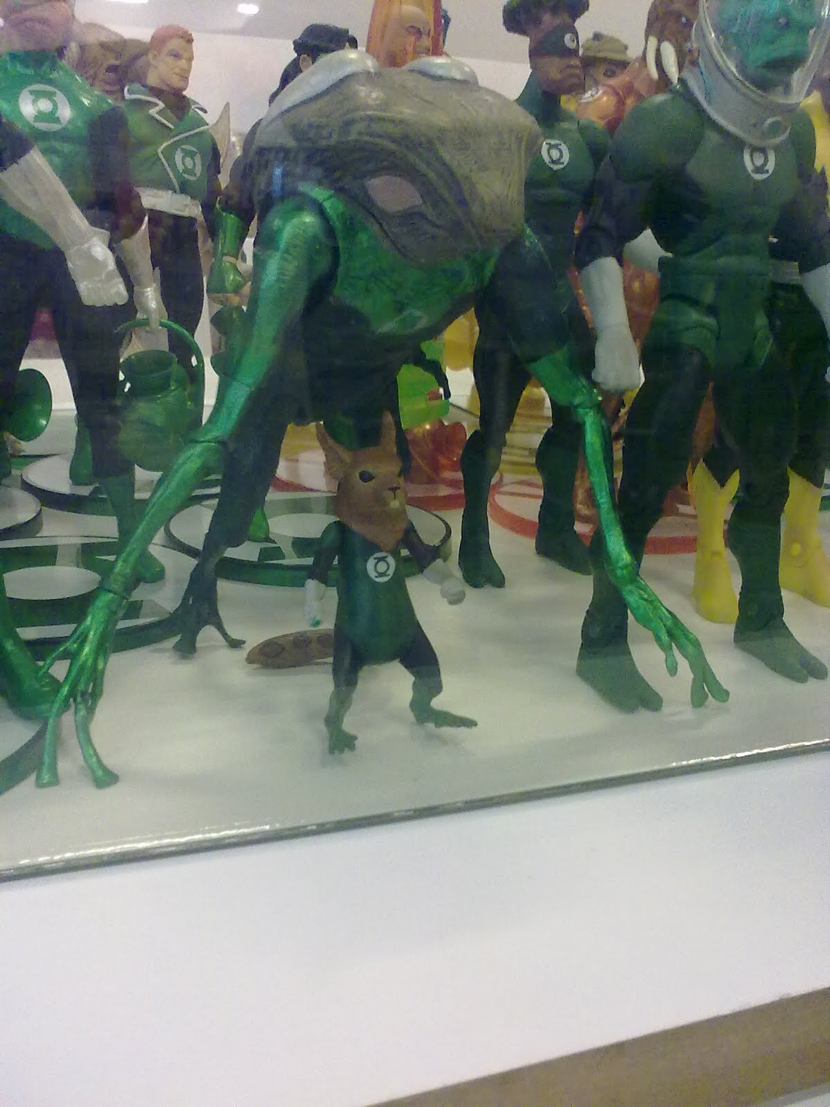 Além das revistas, eles tinham action figures, bonés, chaveiros e etc; e uma coleção de action figures do Lanterna Verde muito estilosa.