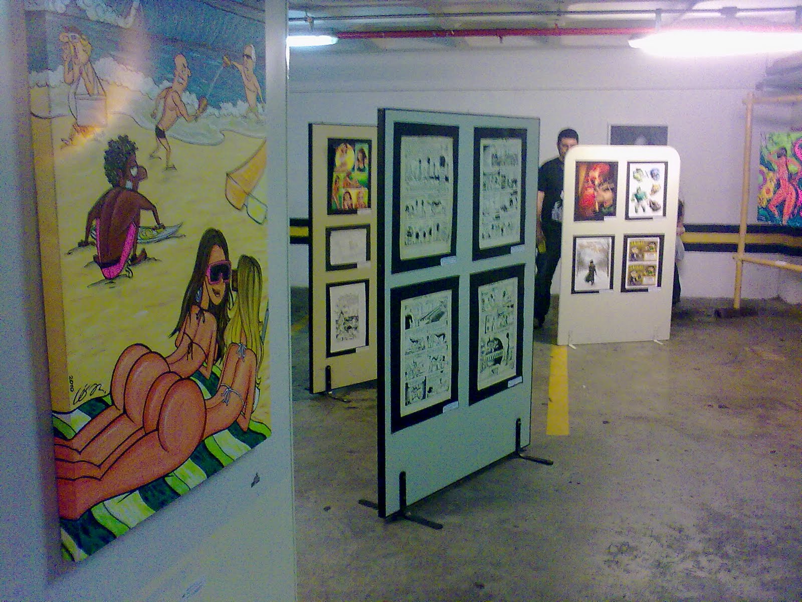 No canto oposto ao dA Toca, próxima da lona que separava o palco da área de circulação, estava uma mostra de desenhos, quadrinhos e pinturas de diversos artistas. Vários estilos misturados de muitos autores pra gente viajar vendo os traços e lendo as histórias expostas (eu, pelo menos, tenho costume de apreciar até o formato das linhas quando vejo um desenho que me agrada).